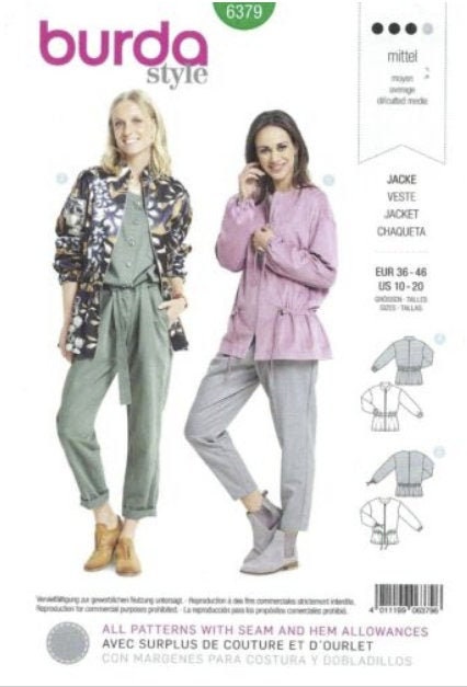 Burda Sewing Pattern 6379 Style Misses Blousons With Drawstring Waist